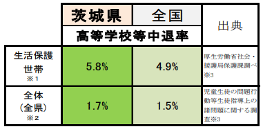 貧困状態の子どもや、ひとり親世帯のうち貧困状態の子どもは、高校への進学率が全国平均よりも低く、進学しないこともさらなる貧困の連鎖を招く原因となっています。